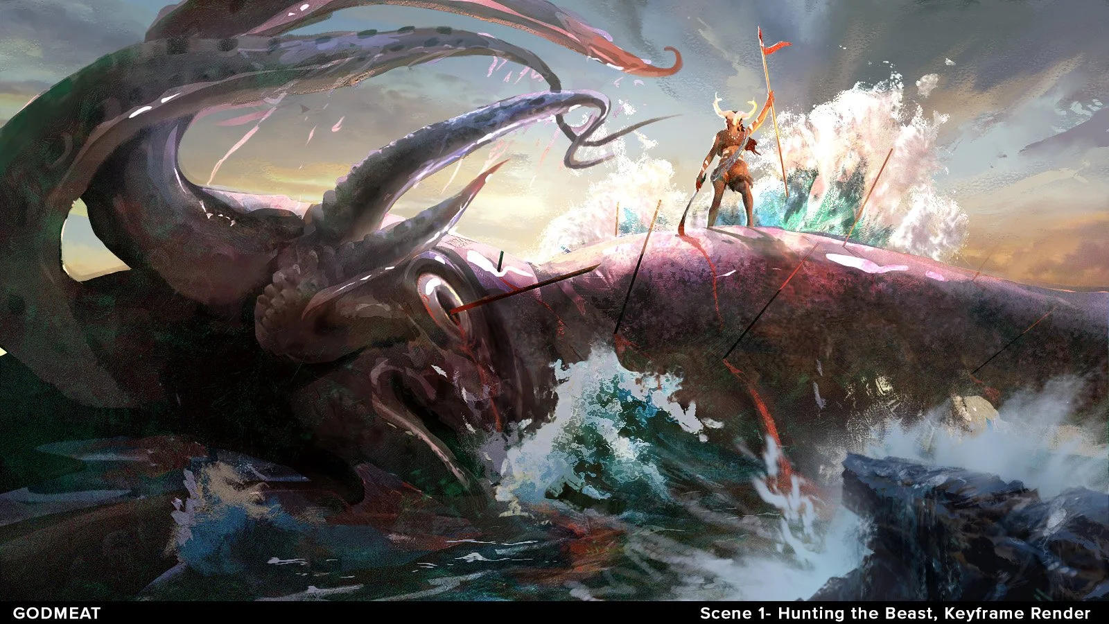 Godmeat- based on a short story by Martin CahillA chef and a warrior hunt godlike beasts to feed the heralds of the apocalypse Back to Portfolio